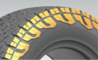 厚实的胎侧三维立体保护构造,强化耐切割性能,保护胎侧应对撞击;